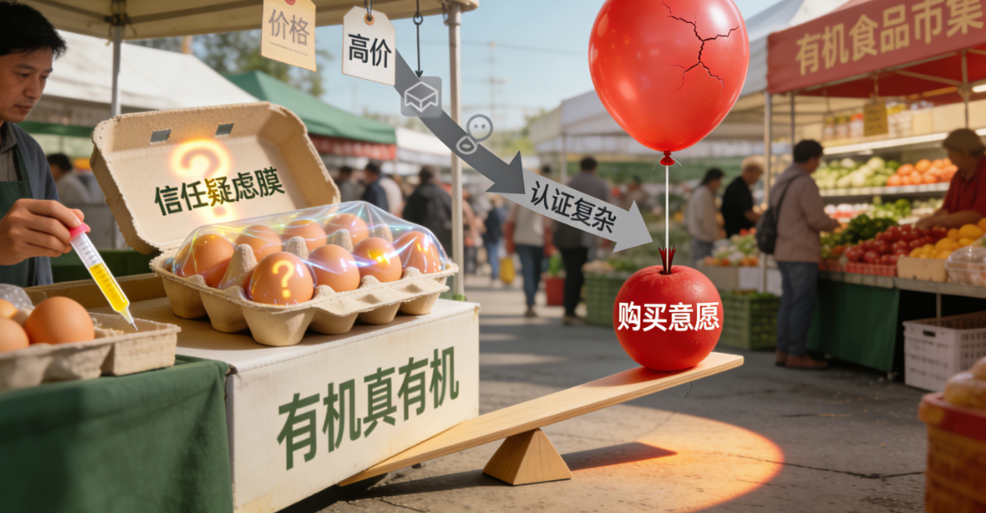在有机食品市场上,一个令人费解的难题长期困扰着产业链的上下游:一边是消费者日益增长的健康与环保需求,另一边却是大量厂家生产的优质有机产品面临市场接受度不足、难以实现预期溢价的困境。许多有机产品的销售并未达到预期,甚至积压在超市的货架上。问题的根源,往往并不在于产品本身的品质,而在于一个更为抽象却至关重要的因素——信任。有机食品作为典型的“信任品”,其核心的食品安全、环境保护与动物福利等内在品质,是消费者在购买时无法立即体验和验证的,这一特征被称为“信任品”特征。正是这种固有的信息不对称,构成了横亘在厂家与消费者之间,阻碍市场价值实现的一道巨大鸿沟。消费者无法通过简单的“搜寻”来确认一袋大米是否真的零农残,一块牛肉是否出自真正的有机牧场,这使得他们对高价背后的价值承诺心存疑虑。当信任缺失时,无论厂家如何宣传产品的优势,经销商如何推广,超市如何陈列,消费者的支付意愿都会大打折扣,最终导致整个有机食品市场的潜力无法被充分释放,优质优价难以实现。