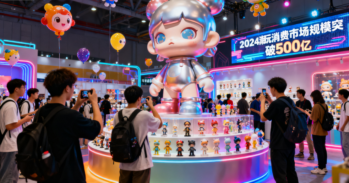 TOP TOY的崛起,恰逢潮玩行业从“小众狂欢”迈向“大众消费”的黄金周期。行业发展已完成三轮迭代:2015年前后萌芽期以少数设计师IP和盲盒为主;2016-2020年扩张期泡泡玛特等头部品牌推动大众化;2020年至今的多元化期,以TOP TOY为代表的集合品牌凭借多IP、多渠道、海外扩张成为新主角。弗若斯特沙利文数据显示,2024年中国内地潮玩市场规模达587亿元,而TOP TOY以24亿元GMV、近50%的自研产品收入占比,稳居潮玩集合品牌首位。政策层面,国家扶持文化消费升级与国产IP发展,为潮玩行业提供了良好环境;技术层面,AI绘画、3D打印等技术提升了创意与生产效率,催生更多新IP;消费端,Z世代成为主力,他们对动漫、游戏、虚拟偶像等二次元内容的热情,叠加抖音、B站、小红书等平台的IP孵化能力,让潮玩需求持续爆发,某B站UP主靠原创动漫短片积累粉丝后推出联名盲盒即售罄,虚拟偶像“洛天依”周边手办热销就是典型例证。