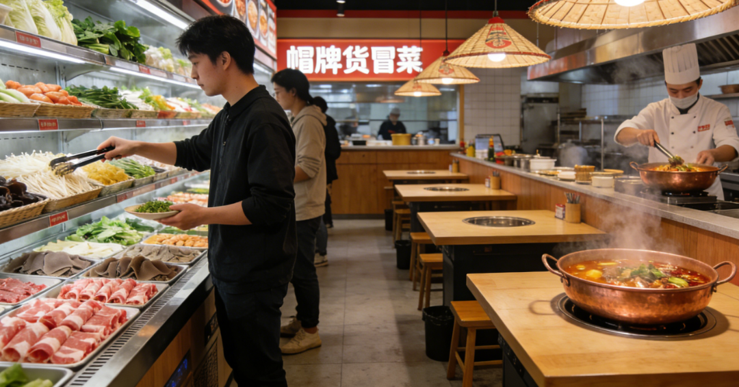体验端的升级则让 “快餐不快消” 成为现实。帽牌货冒菜对全国门店进行全方位焕新,在保留传统餐饮温度感的同时,将现代美学与地域文化元素融入空间设计,升级后的 VI 系统大幅降低消费者识别成本,让门店成为自带传播力的打卡地。细节处的用心更显品牌诚意:优化菜品选菜区布局,让选菜过程更便捷高效;增设自助小吃与饮料区,提升消费性价比;推行菜品制作可视化,让消费者直观看到食材处理与烹饪全过程,吃得更放心。这种从视觉、味觉到体验感的全维度升级,让每一位食客在便捷就餐的同时,都能感受到品牌的用心,也让 “吃冒菜就选帽牌货” 成为越来越多人的消费共识。