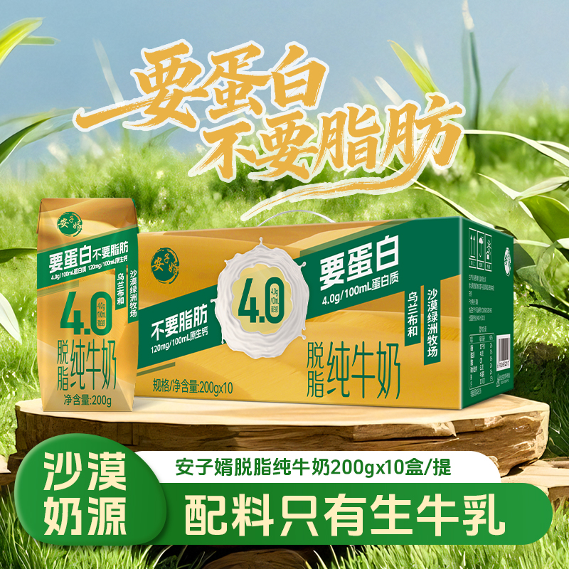 6、产品特色描述:核心奶源源自乌兰布和沙漠绿洲自有牧场,凭借沙漠独特的生态环境,保障奶源的纯净度与营养密度;精准契合当代人健康需求,打造0脂肪配方,搭配4.0g高蛋白含量,营养与轻盈兼具;配料表极致简洁,仅含生牛乳,无任何添加剂,还原牛奶本真风味。