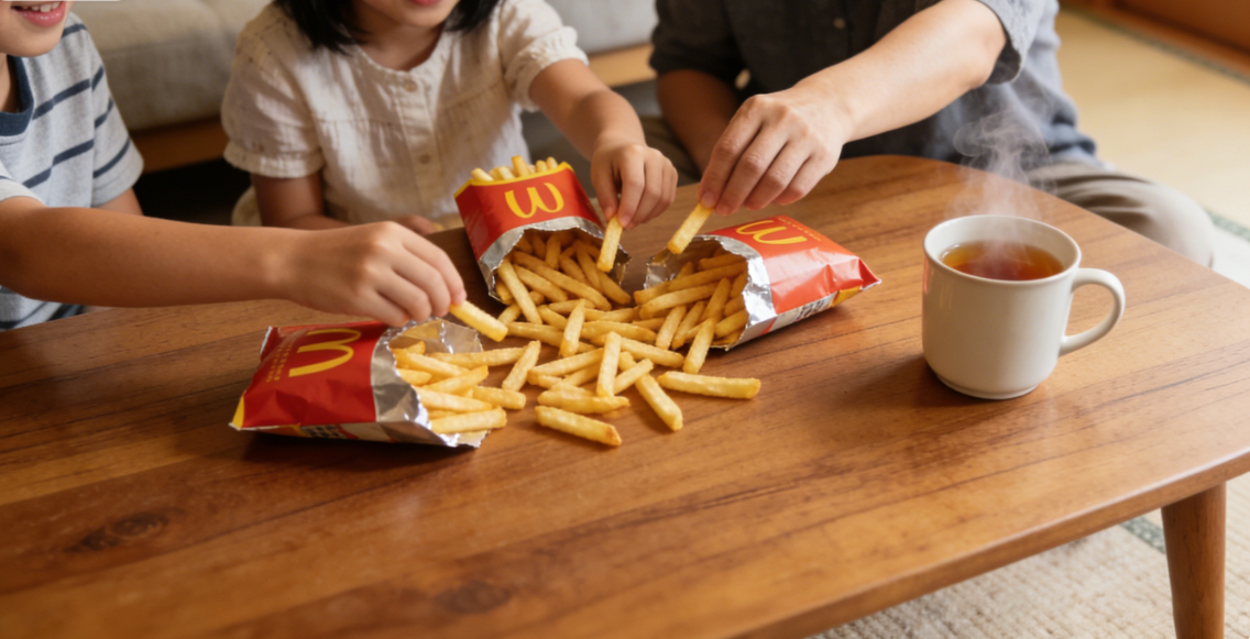 历经初代产品的失利,卡乐比展开了全方位的优化升级,从品牌名、包装到产品工艺,进行了一场彻底的“革命”,最终打造出薯条三兄弟这款爆款产品。2003年,改良后的产品正式上市,拥有了一个更具生命力的名字——Jaga Pokkuru(土豆小精灵),灵感源自北海道原住民传说中的森林小精灵,而在华人圈,它更响亮的名字是“薯条三兄弟”。包装上,卡乐比摒弃了臃肿不便的便当盒,采用极具辨识度的浅黄色长方形纸盒,封面上三个拟人化的薯条小人,大哥沉稳、二哥活泼、三弟呆萌,成为最强的视觉符号,瞬间拉近了与消费者的距离。同时,品牌吸取初代产品的教训,将大包包装改为独立小袋设计,不仅解决了防潮问题,更精准契合了日本的社交文化——在日本,伴手礼(Omiyage)通常需要送给整个办公室或家庭,独立小袋设计极大地降低了分发难度,也减少了送礼者的选择成本。在产品工艺上,卡乐比投入大量精力升级生产线,采用“小锅慢炸”工艺,区别于大规模生产的输送带式油炸,这种工艺能更精准地控制油温,让每一根带皮薯条都能呈现出接近手工炸制的质感,这种介于法式炸薯条与传统脱水薯片之间的“混合质地”,成为薯条三兄弟的独特标识。调味上,卡乐比坚持“极简主义”,选用约95%来自鄂霍次克海萨罗马湖的海盐,这种海盐经过缓慢熬煮提纯,咸味温和、杂味极少,不会掩盖土豆本身的风味,最大化还原了“土豆该有的样子”,也让这款薯条摆脱了传统零食的厚重调味,更贴合健康消费需求。