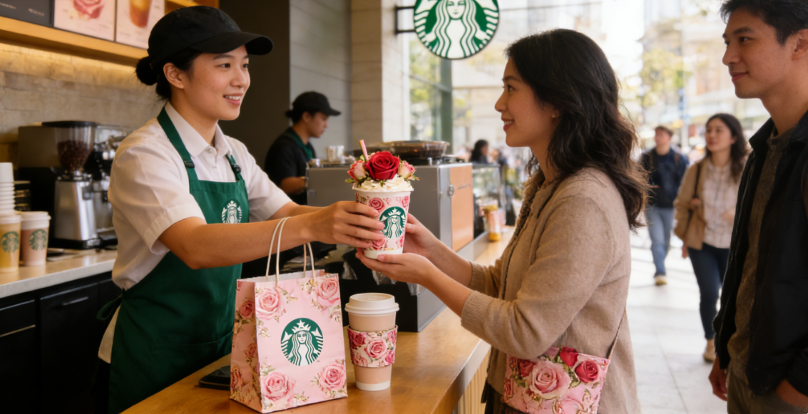 此次玫瑰 20 系列的回归,星巴克同步启动了全国 160 多家主题门店的打造,这些门店在全国多城同步绽放,成为春日消费市场的 “浪漫地标”。所有主题门店均围绕 “玫瑰 20・春日浪漫” 的核心主题进行布置,从门店门头的玫瑰花艺装饰,到店内的玫瑰元素陈列,再到产品包装上的玫瑰纹样设计,全方位营造出沉浸式的春日浪漫氛围。这些主题门店并非简单的装饰升级,而是从产品、场景、服务多维度打造春日消费体验,消费者到店不仅能品尝到玫瑰 20 系列饮品,还能参与门店的春日打卡活动,解锁专属浪漫福利。这种沉浸式的门店布局,让星巴克的春日浪漫不再局限于产品本身,更成为一种可体验、可参与的消费场景,精准契合了春日情侣约会、闺蜜相聚的核心需求,也让玫瑰 20 系列的浪漫基因得到了最大化的传递。