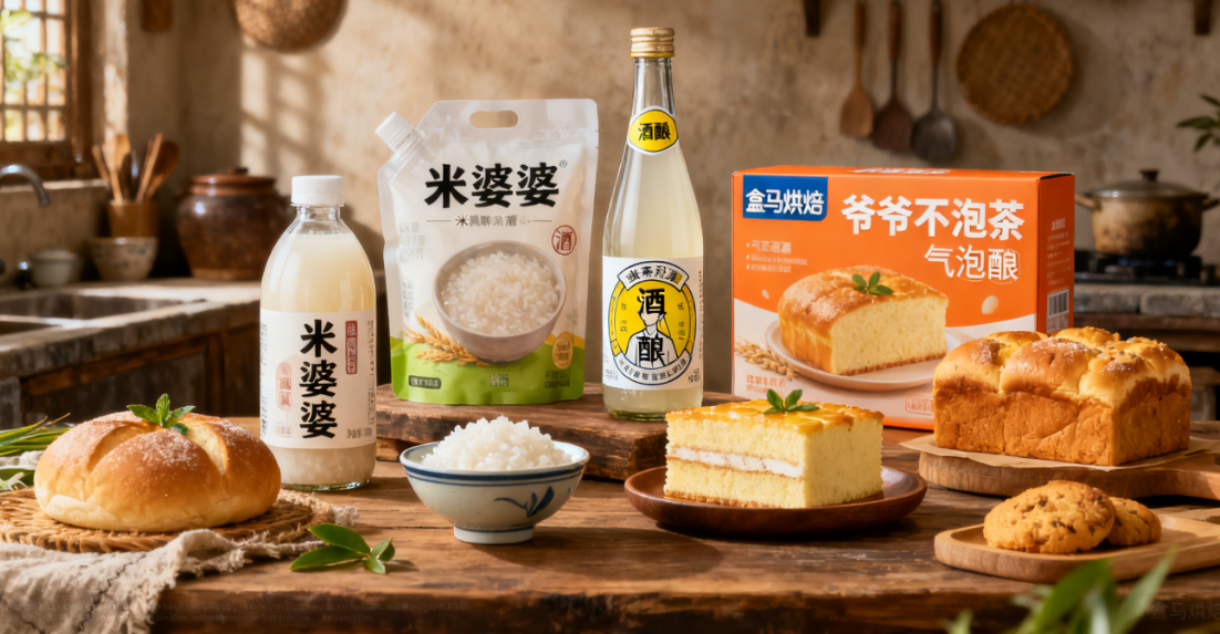 2024年的新茶饮与零售市场,被一款传统食材彻底点燃——酒酿。从爷爷不泡茶热销3800万杯的“荔枝冰酿”,到盒马屡次霸榜的“桂花酒酿大福”“慢发酵米酿吐司”,这股“酒酿热”已从餐桌延伸至茶饮、烘焙、低度酒等多个赛道,传统品牌与新锐玩家纷纷入局,推动这个古老品类焕发新生。数据显示,2024年中国米酒市场规模已达330亿元,占据酒类市场4.1%的份额,预计2025年将突破350亿元。这股热度并非偶然,健康饮食与“轻微醺”风潮下,低度、天然、无添加成为消费关键词,而酒酿兼具低酒精度、丰富营养与东方风味的特质,恰好精准承接了市场需求。更值得关注的是,以孝感米酒为代表的区域品牌已实现全国化突破,2024年其产业链产值达60亿元,占据全国米酒市场85%的份额,强大的区域势能为品类爆发奠定了坚实基础。从一碗传统甜酒到千亿赛道的“黑马”,酒酿的蜕变背后是消费升级与品牌创新的双重驱动。