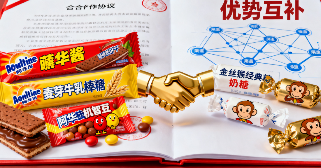 糖巧行业迎来重量级跨界合作!日前,百年品牌阿华田与国民糖巧巨头金丝猴正式签署全面战略合作框架协议,这场汇聚国际品牌影响力与本土渠道硬实力的联手,以糖巧品类为核心战场,涵盖产品研发创新、供应链协同、市场联动推广、渠道深度扩展等多重维度,更明确将阿华田蘸酱饼干、麦芽牛乳棒糖、机智豆三大产品作为渠道拓展“先锋军”,依托金丝猴的线下网络与重点客户资源快速渗透市场。消息一出,立刻引发糖巧行业、渠道商及消费者的广泛关注,被业内解读为“国际品牌+本土渠道”强强联合的标杆案例,有望彻底改写国内糖巧市场的竞争格局。