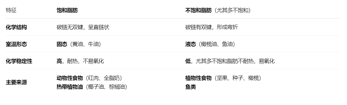 饱和脂肪 vs. 不饱和脂肪
