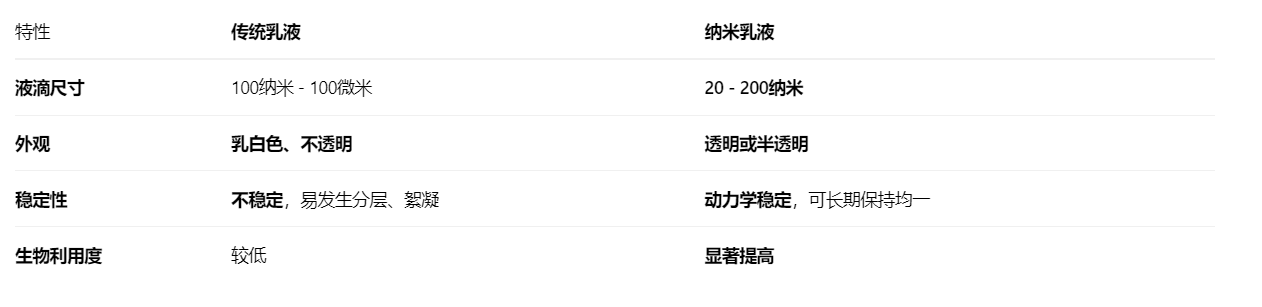 吸收率飞跃:纳米尺度的油滴比表面积巨大,更容易与肠道细胞接触,并通过淋巴系统等途径直接吸收,生物利用度可提高数倍至数十倍。