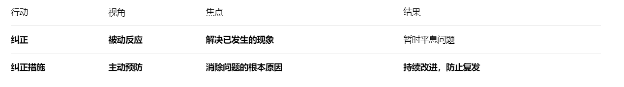 纠正措施 是指为消除已发生的不合格(问题)或其他不期望情况的根本原因,并防止其再次发生所采取的行动。
