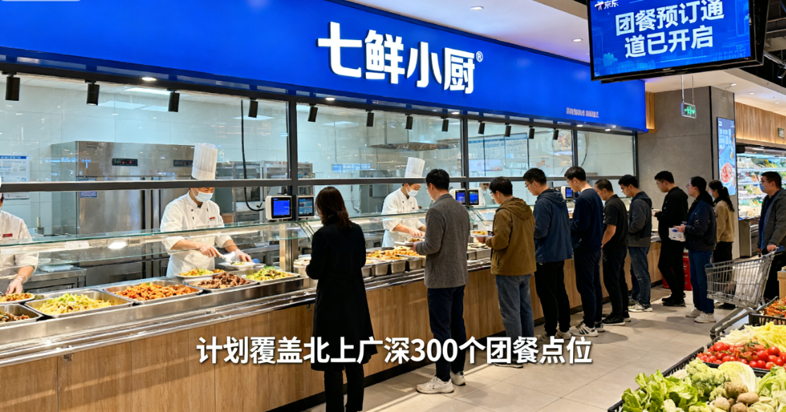 11 月 14 日,京东旗下餐饮品牌七鲜小厨正式官宣推出团餐服务,全面承接企事业单位食堂运营与线上团餐订餐业务,覆盖校园、职场等核心场景,目前已与多所高校及科技企业园区达成试点合作,明确提出年内覆盖北京、上海、广州、深圳四地超 300 个团餐点位的目标。这一动作并非简单的业务延伸,而是京东依托自身供应链与数字化优势,向规模达 2.7 万亿元的团餐市场发起的精准冲击,其亮出的 “新鲜现炒”“食材透明”“24 小时后厨直播” 三大核心打法,直接瞄准传统团餐 “预制菜泛滥”“安全不透明” 等行业痛点,有望重构团餐行业的竞争逻辑。