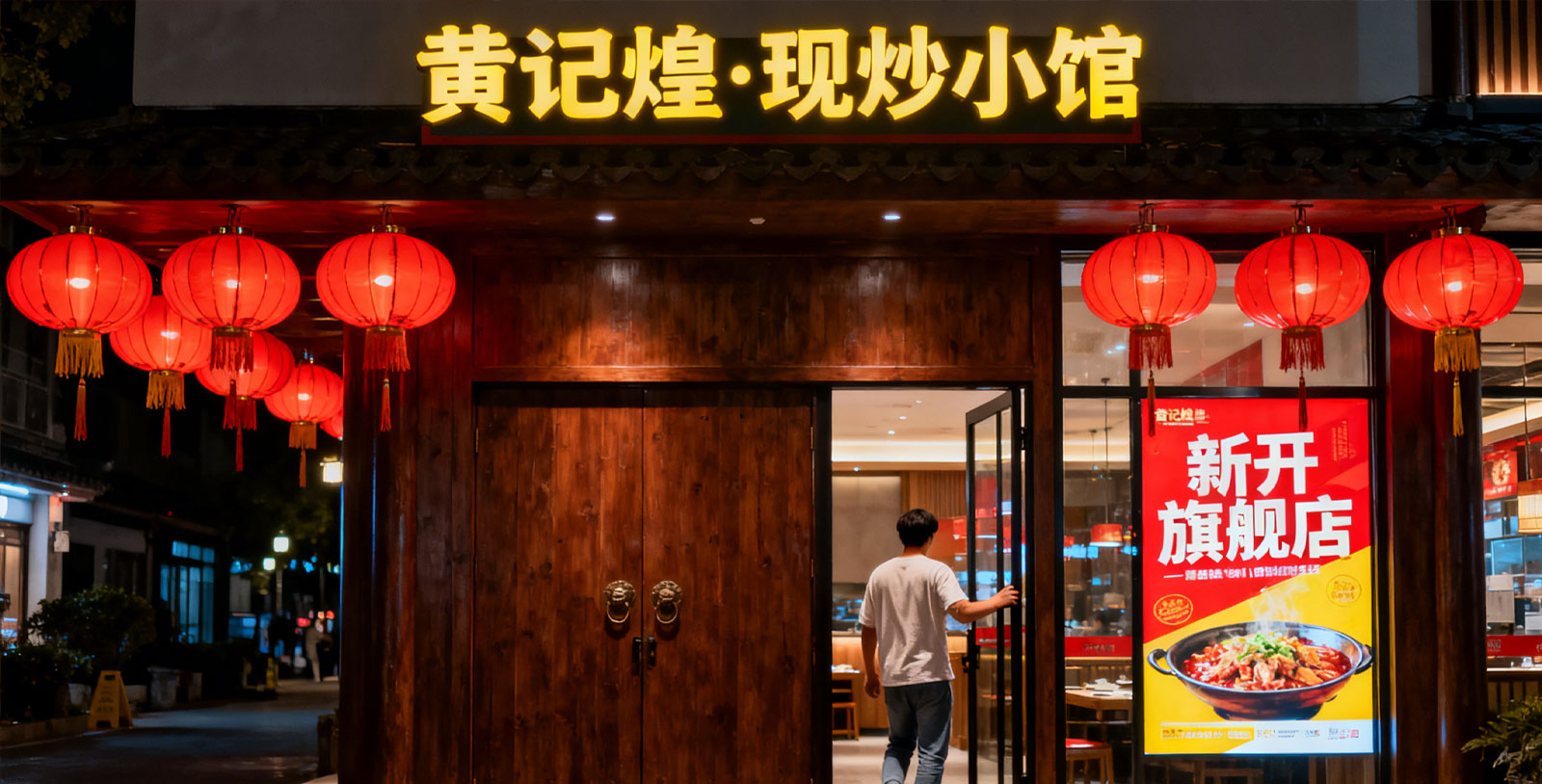 门店定位的彻底转向,是黄记煌焖小馆最直观的变革。以往黄记煌门店多扎根核心商圈商场,而此次上海首店选在静安区临汾路街道的和源名城周边,步行1.3公里可达上海市第四人民医院,精准锁定街坊日常用餐、医院陪护及周边上班族的刚需消费。100平米的紧凑面积大幅降低了租金成本,店内以2-4人桌为主力布局,既适配家庭小聚的核心需求,也通过灵活拼桌兼顾“一人食”场景,填补了传统焖锅店对单人客群的覆盖空白。装修风格也彻底放下商场店的精致感,采用木质门头搭配暖黄灯光,营造出街边老店的温润亲切感,更贴合社区居民的用餐心理。为适配社区消费的即时性需求,门店还专门在门口设置独立取餐口,外卖骑手无需进店即可快速取餐,大幅提升了外卖运营效率,形成“堂食+外卖”的双场景互补。
