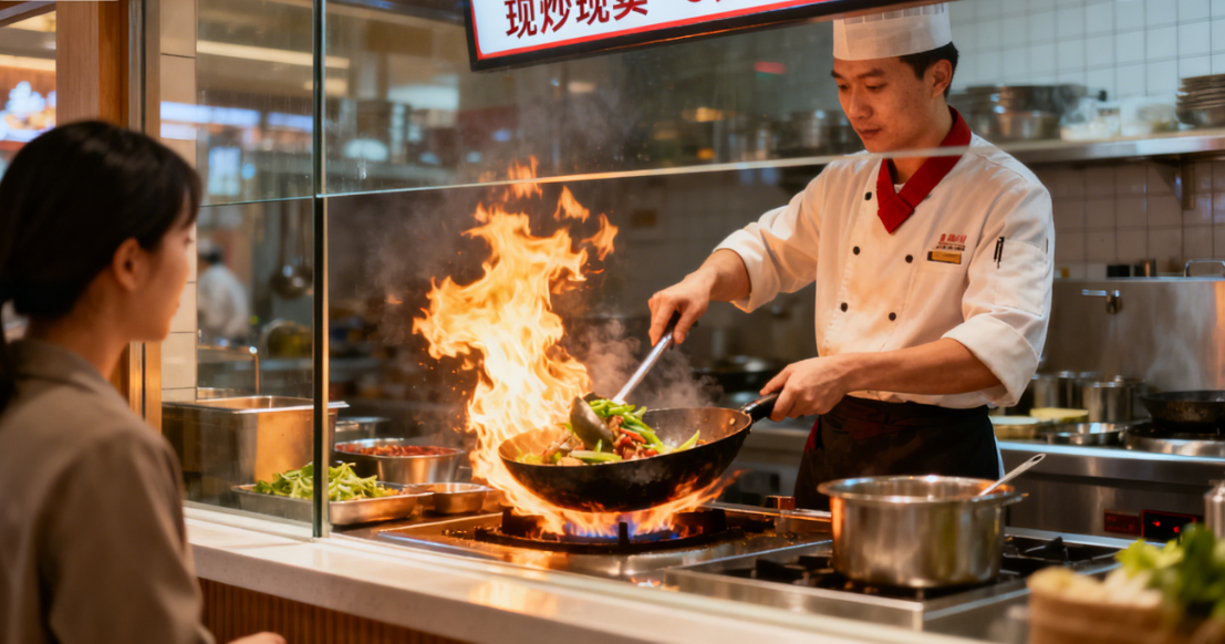 产品结构的创新重构,让“焖”这一核心基因有了更灵活的表达。焖小馆将SKU精简至20余款,摒弃了传统门店的繁杂品类,却通过“焖+多元烹饪”的组合实现了风味扩容。经典焖锅作为根基得以保留,但在呈现形式上更趋轻量化,比如“海捕大虾锅”以蔬菜打底搭配大虾、金针菇等食材,“黄金香炸大猪排锅”融合猪排与鸡腿肉,既延续“一锅多料”的特色,又控制了分量与价格。更具突破性的是新增的融合焖菜与焖炒小锅两大系列:融合焖菜将焖制工艺与地域风味结合,推出花甲水晶粉、江西风味三杯鸡、川辣年糕虎皮凤爪等新品,让焖锅不再局限于单一味型;焖炒小锅则直接切入“现炒”赛道,采用“先焖锁鲜+快炒提香”的创新做法,在保留食材鲜嫩的同时强化锅气,酸辣虫草花土豆丝、双椒小炒牛肉等菜品兼顾下饭属性与烟火气,更关键的是将出餐时间从传统焖锅的20分钟以上压缩至10分钟左右,适配了快节奏的社区消费场景。小食、汤品与饮品的搭配则精准满足一餐所需,形成完整的产品闭环。