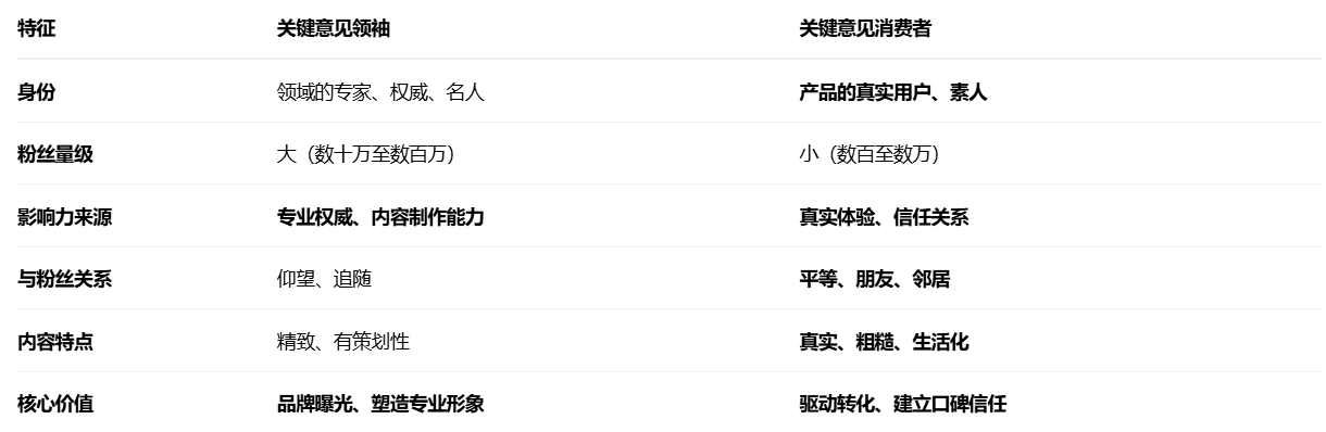 KOL是关键意见领袖:像是知名专家或大明星,专业权威,但距离感强。