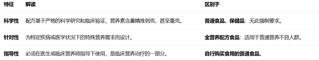 核心精髓:它本质上是“食品”,而非药品;但它必须在医生或临床营养师指导下,单独食用或与其他食品配合食用,其目标是为目标人群提供有针对性的营养支持,以改善其营养状况、辅助疾病治疗、促进身体康复。