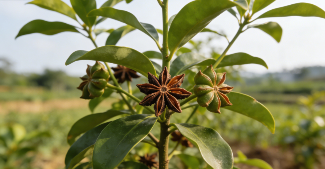 作为我国首批药食同源物质(2002 年纳入),八角茴香(Illicium verum Hook.f.)的价值远不止于调味品。这种木兰科茴香属植物起源于中国,如今主要产于我国南方地区及越南、柬埔寨、缅甸等国家,其干燥果实因星形外观被俗称 “八角”,味道甜辣交织,自带甘草、丁香与肉桂的复合香气,是全球多元美食的 “风味密码”—— 从越南河粉的汤底、摩洛哥塔吉锅的香料包,到墨西哥咖啡的调味、中式卤味的核心配方,再到印度奶茶和欧洲热红酒的灵魂点缀,八角茴香以独特香气串联起不同地域的饮食文化。截至目前,科研人员已从八角茴香中分离出超 200 种化学成分,包括烃类、醇类、酯类、有机酸和挥发油等,其中八角茴香油含量最高,是其标志性甘草味的来源,而莽草酸则是应用最广泛的功能性成分之一。除了调味,八角茴香还具有温阳散寒、调理气血、缓解疼痛等传统功效,为其跨界应用提供了坚实的药食同源基础。