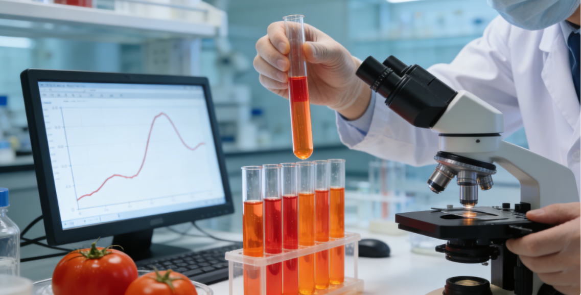 作为食品中第六大常见的类胡萝卜素,番茄红素的身份远比想象中复杂。类胡萝卜素主要分为烃类和叶黄素类两大类,番茄红素(C40H56)属于前者,是一种由碳和氢构成的脂肪族直链烃,分子结构中含有 13 个碳碳双键,其中 11 个共轭双键和 2 个非共轭双键,正是这些特殊结构赋予了番茄、西瓜、番石榴等植物鲜艳的红色。在人体中,番茄红素是血浆中含量最高的类胡萝卜素,半衰期约为 2-3 天,血浆浓度范围在 0.2-21.4 nmol/g,组织浓度则为 0.15-21.36 nmol/g,动物实验显示其在肝脏、脂肪组织、肾上腺和脾脏中高度富集。需要注意的是,随着年龄增长,健康人群的番茄红素生物利用度会逐渐下降,这与胃肠道结构的衰老性变化导致的吸收率降低密切相关。在中国,番茄红素被列入《食品安全国家标准 食品添加剂使用标准》(GB 2760-2014),功能归类为着色剂,但它的价值远不止于此 —— 作为营养补充剂,番茄红素拥有极强的抗氧化能力,能通过中和自由基减轻氧化应激损伤,而抗抑郁研究中出现的 “剂量反转现象”,也与抗氧化系统的过饱和有关:当摄入量超过阈值,多余的番茄红素无法进一步增强抗氧化作用,反而会削弱整体益处。