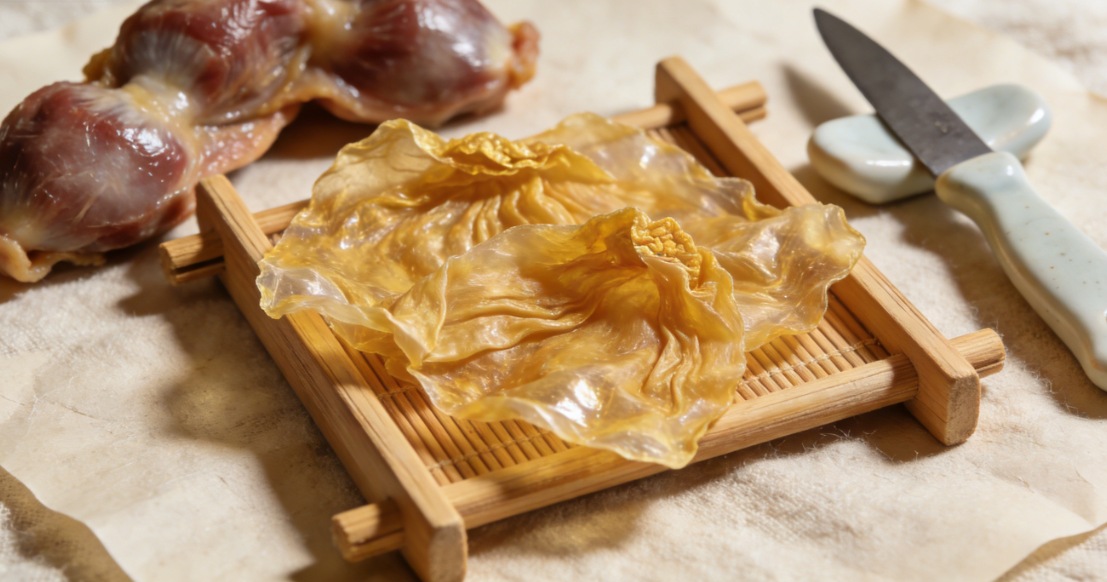 鸡内金并非新奇之物,它是雉科动物家鸡砂囊的干燥内壁,这层薄如蝉翼、表面带着条状皱纹的黄色薄膜,性甘味平且无毒,既是餐桌上鸡胗的 “附属品”,更是医书中的养生瑰宝。其药用历史可追溯至《神农本草经》,被列为上品药材,《本草纲目》《本草便读》均对其健脾胃、消食积、止反胃的功效浓墨重彩。医学实验派大师张锡纯在《医学衷中参西录》中更是盛赞其为 “消化瘀积之要药,更为健补脾胃之妙品”,书中记载了 12 首含鸡内金的新创方,将其应用拓展至食积、消渴、泄泻、癥瘕等多种病症,还强调其与白术、山药等配伍的精妙之处。2002 年,鸡内金正式入选我国首批药食同源物质,实现了药用价值与食用安全的双重认证。