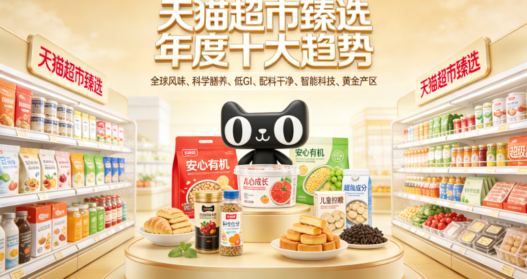 此次发布的十大趋势,实则是天猫超市对当下消费市场需求的深度洞察与精准提炼,每一项趋势都对应着明确的消费痛点与市场机遇。全球风味顺应了当下消费者对多元饮食体验的追求,通过汇聚世界各地特色食材与风味产品,满足个性化味蕾需求;科学膳养与精准控糖则直击健康焦虑,针对不同人群的身体需求提供定制化营养解决方案,尤其受到健身人群、中老年群体的青睐;低GI、配料干净、安心有机三大趋势,共同指向了消费者对食品安全性的高要求,无添加、天然有机成为品质消费的核心标签;黄金产区聚焦原料品质,通过精选地理标志产区的优质原料,从源头保障产品品质;儿童成长赛道则精准对接亲子家庭需求,围绕儿童营养、安全护理等核心诉求打造专属产品;智能科技趋势则将科技赋能融入日用品领域,提升消费体验的便捷性与智能化水平;超级成分则聚焦功效性,通过强化产品的核心功效成分,满足消费者的精准护理与营养补充需求。