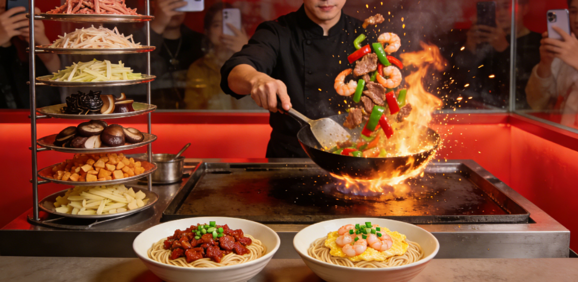 粉面赛道再掀变局!以“书房里的面”闻名的和府捞面,旗下子品牌和府汤面完成彻底转型,正式告别此前“牛排+面”的跨界模式,全力杀入现炒浇头面赛道。此次转型并非浅尝辄止,而是全面重构产品体系,聚焦生炒浇头面与现熬浓汤面两大核心系列,同步上线三款非遗小吃,人均消费锁定35元左右,精准卡位中高端快餐市场。目前,和府汤面上海百盛优客店与新世界店两家新店已正式开业,凭借“现熬现炒”的核心卖点与和府的品牌背书,迅速引发行业关注,这场转型也被视作和府捞面应对经营压力、探索第二增长曲线的关键举措。