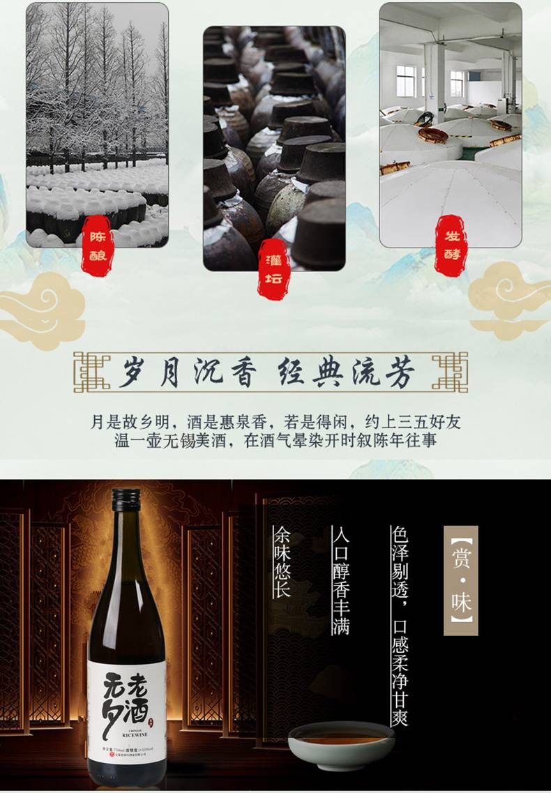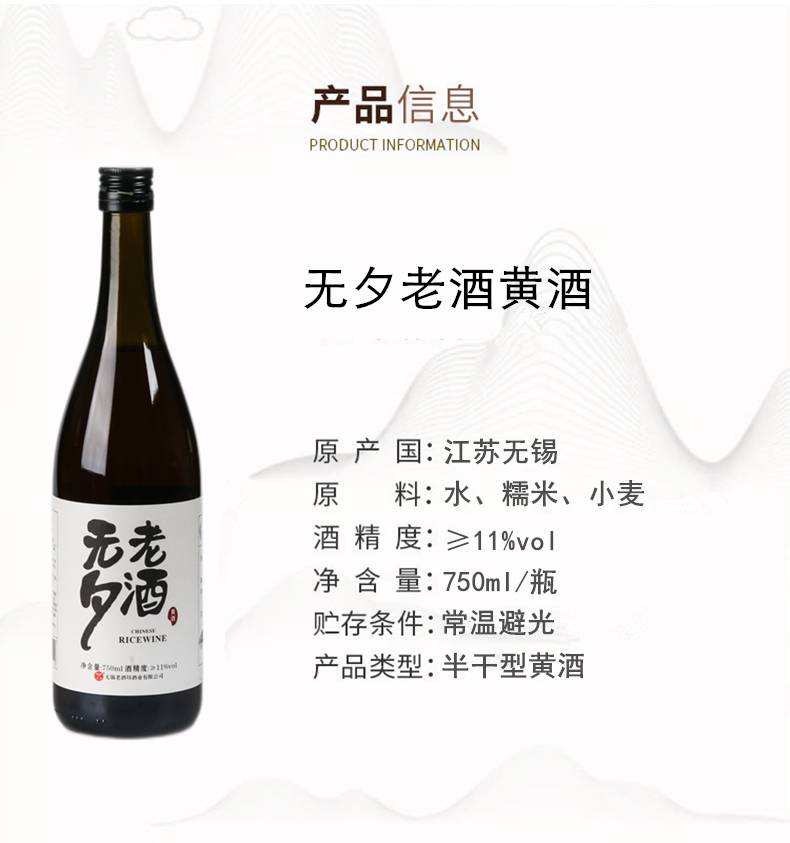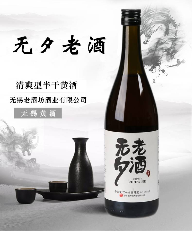 无夕老酒黄酒大师手工酿造清爽半干型无锡黄酒 750ml
