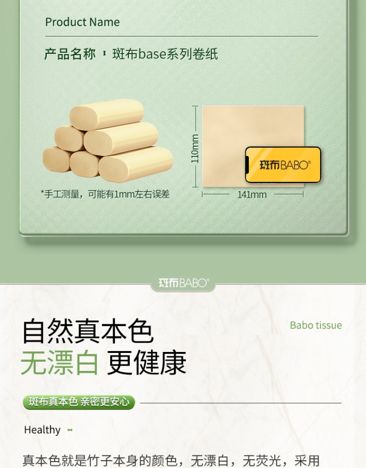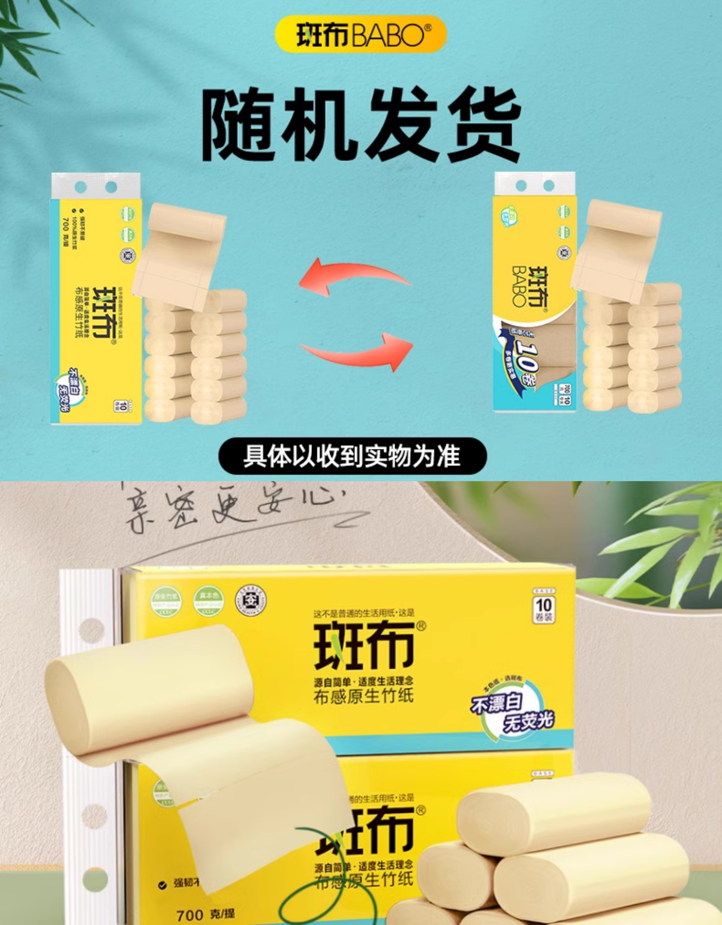 斑布竹浆本色无芯卷纸 70g*10卷*2提