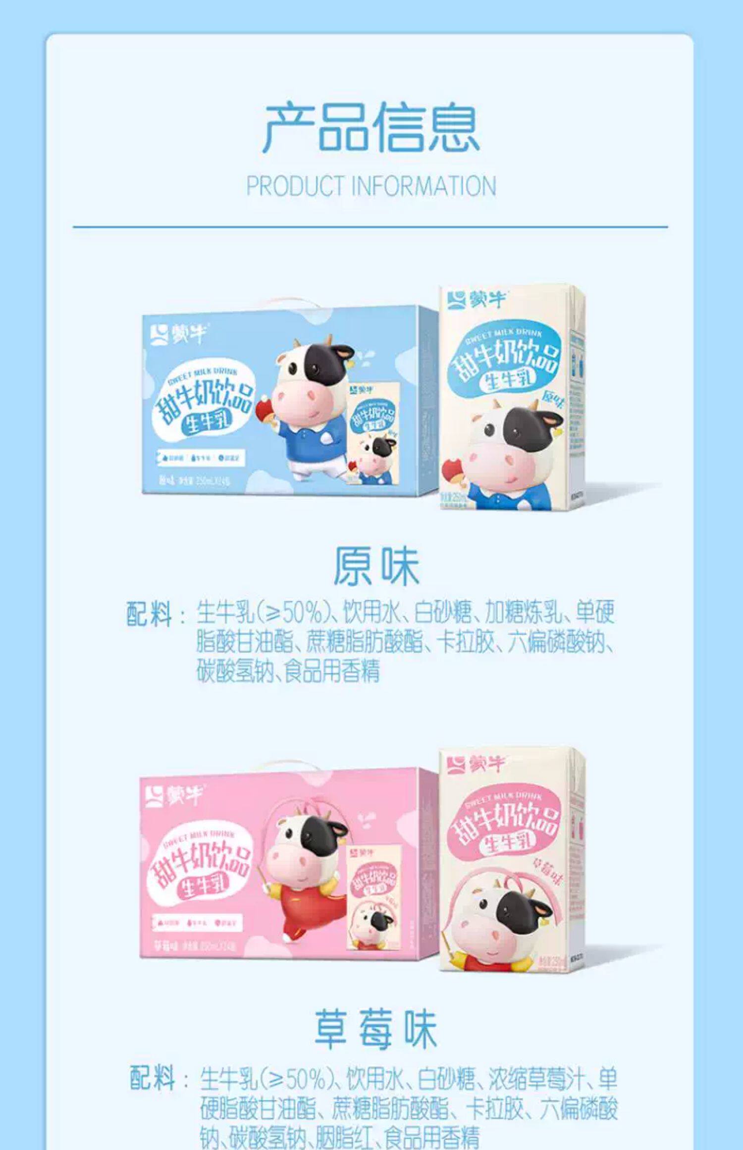 蒙牛甜牛奶饮品原味/草莓味250ml×24包 包装随机发