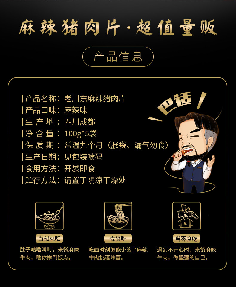 老川东麻辣猪肉片 100g*3袋