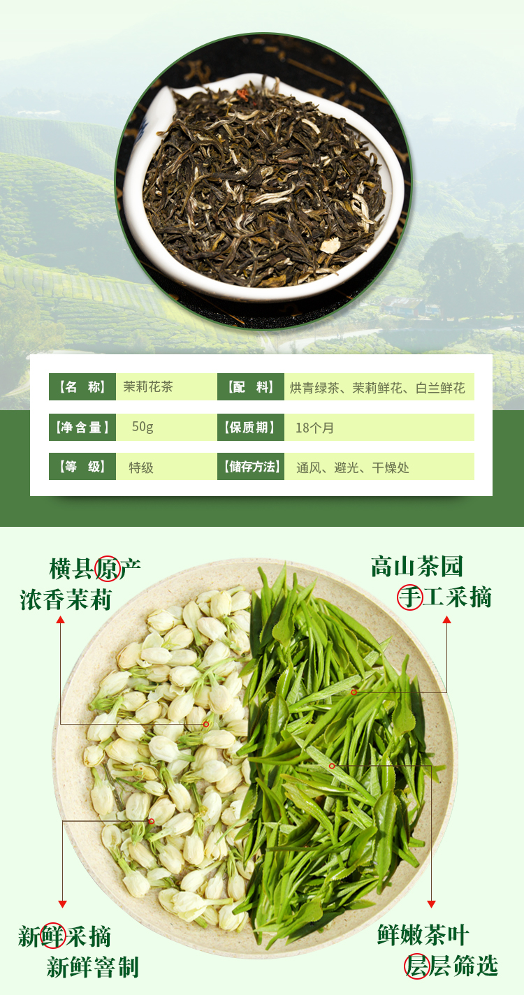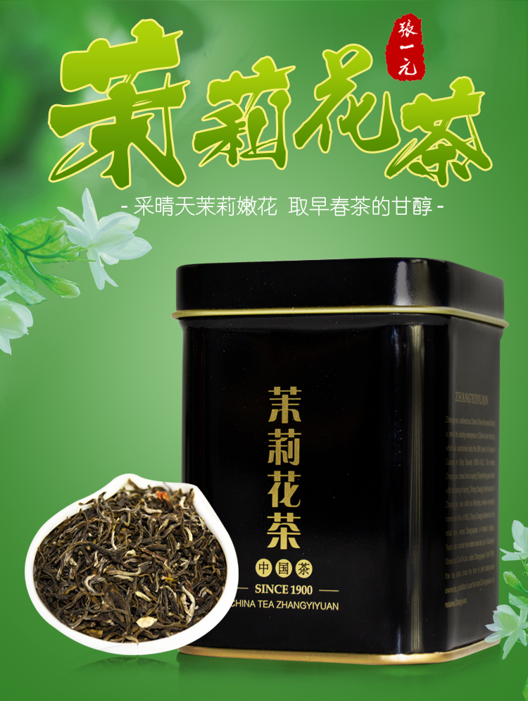 张一元特级茉莉花茶世博茶绿茶 黑罐50g