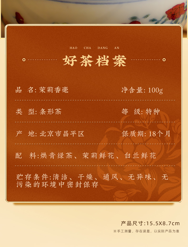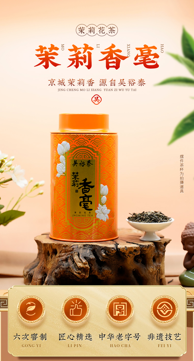 吴裕泰茉莉花茶香毫罐装六窨浓香冷泡 茉莉香毫100g