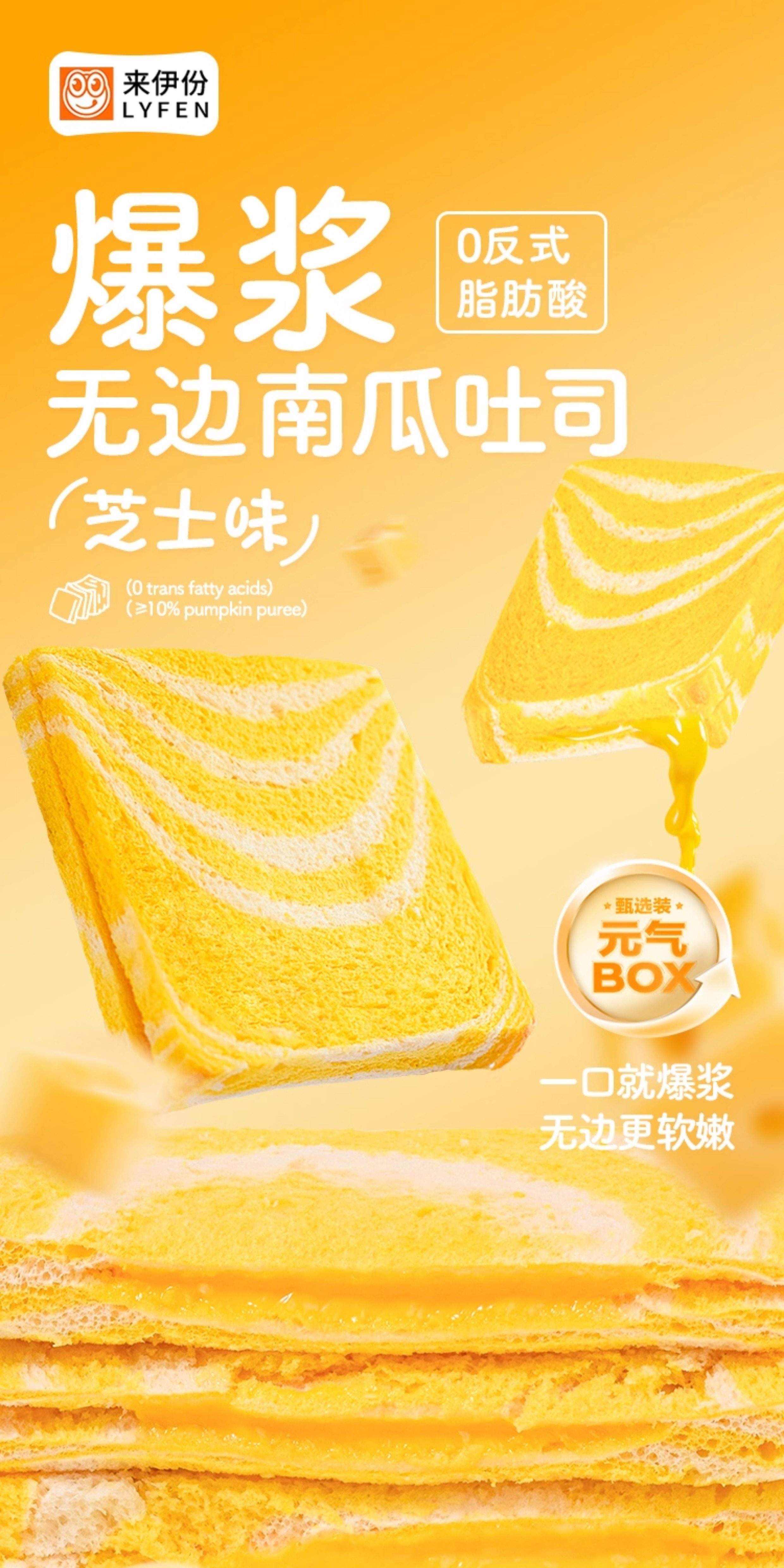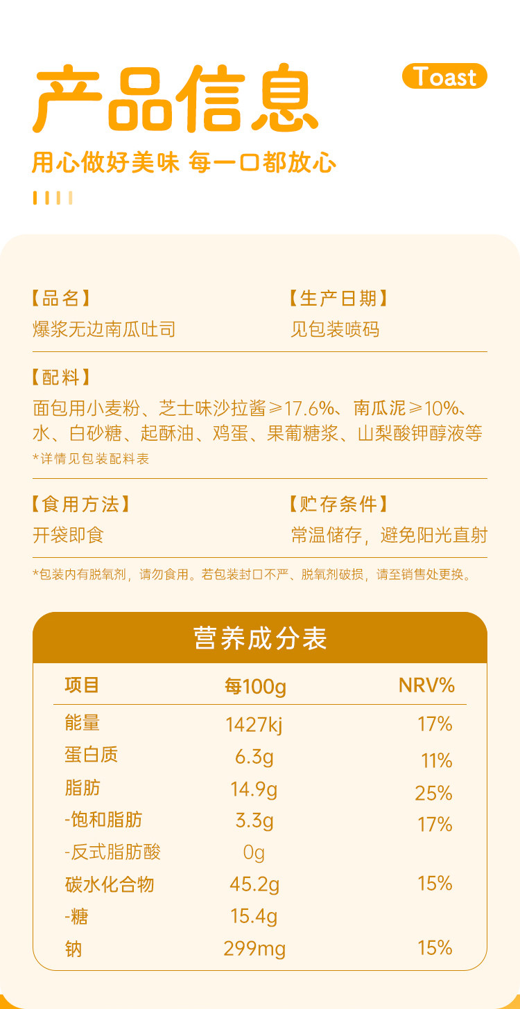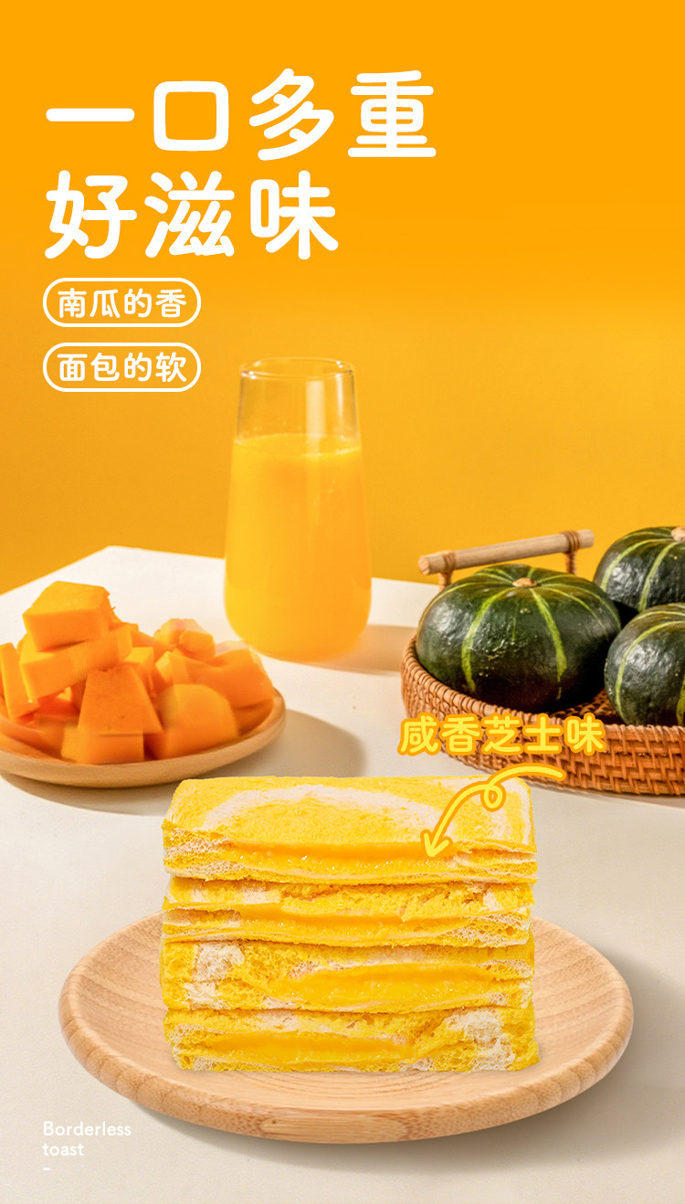 来伊份爆浆无边南瓜吐司500g夹心糕点芝士味面包点心食品休闲零食
