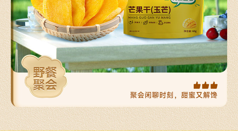 比比赞芒果干休闲玉芒零食解馋小吃食品厚切水果干果脯蜜饯60g*1袋