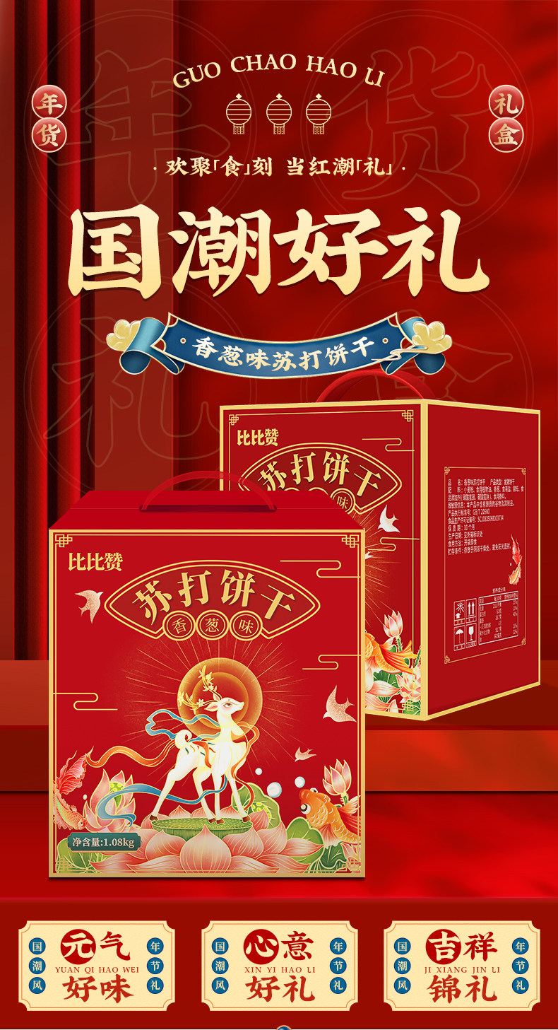 比比赞香葱苏打饼干葱香咸味梳打早餐小零食220g/箱