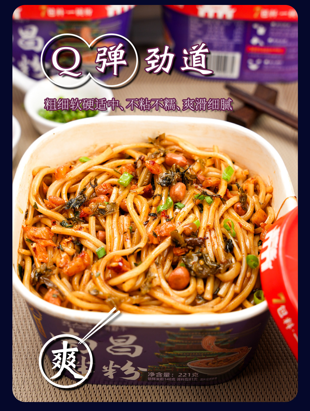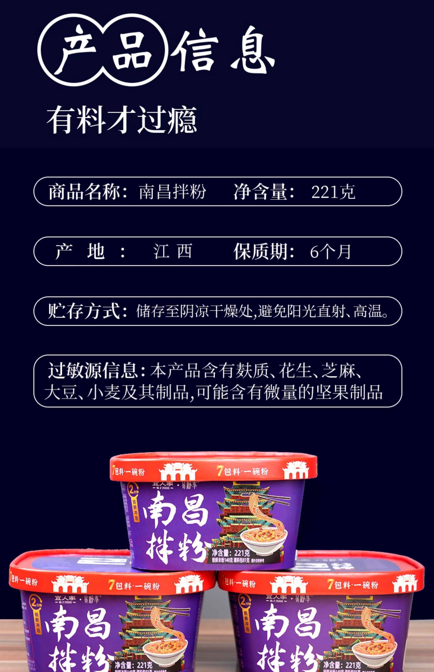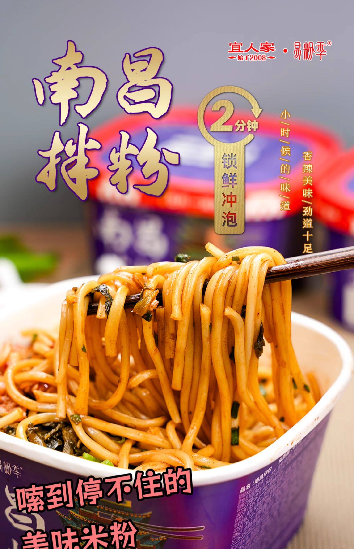 宜人家2分钟冲泡南昌拌粉方便速食江西特产米粉调料粉丝早餐夜宵充饥 221g*1 冲泡南昌拌粉