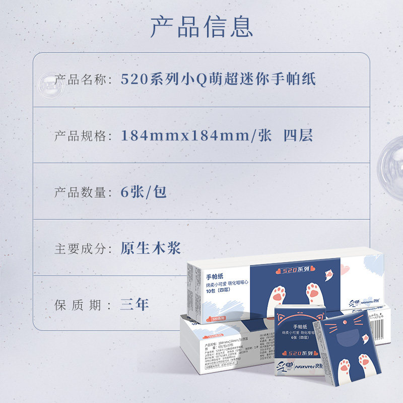 良制猫咪抓520系列小Q萌超柔迷你手帕纸 40包