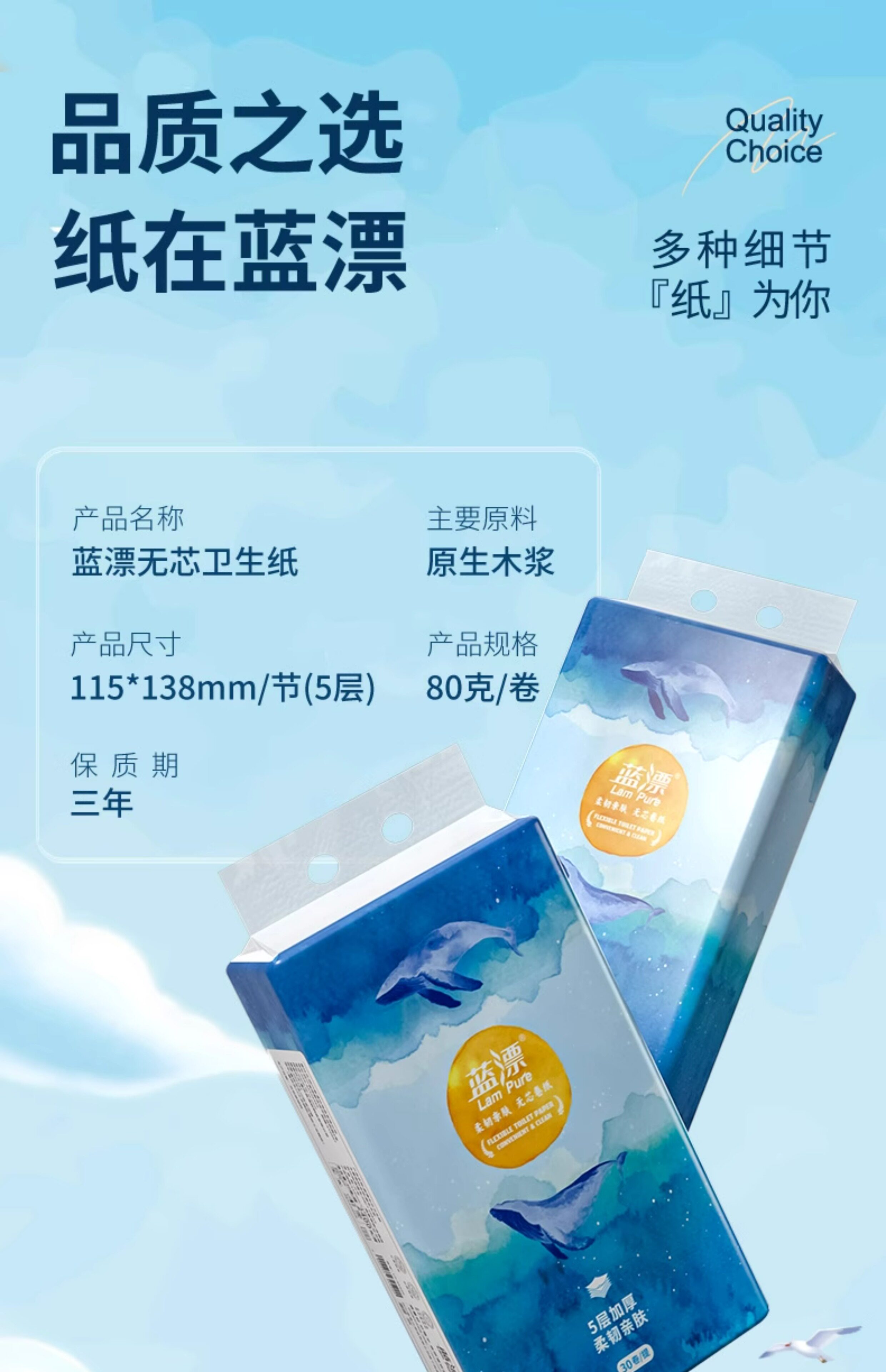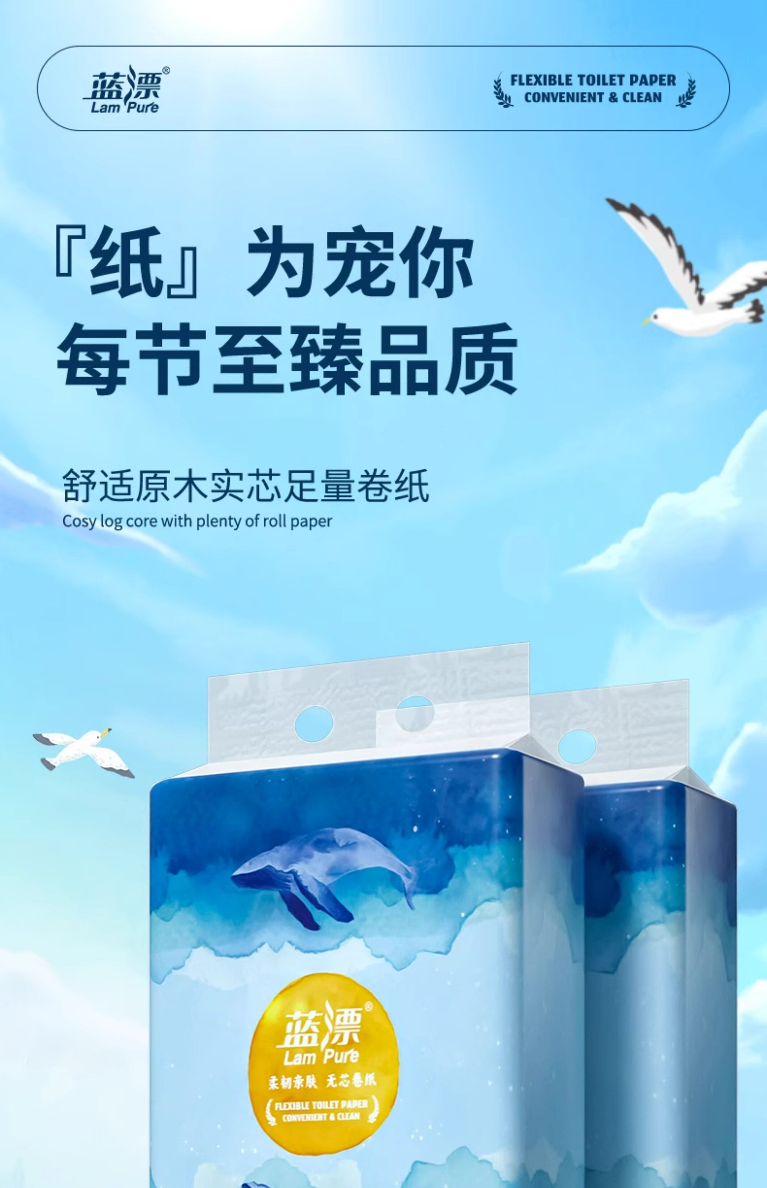 蓝漂 白色扁卷纸 10卷*1提