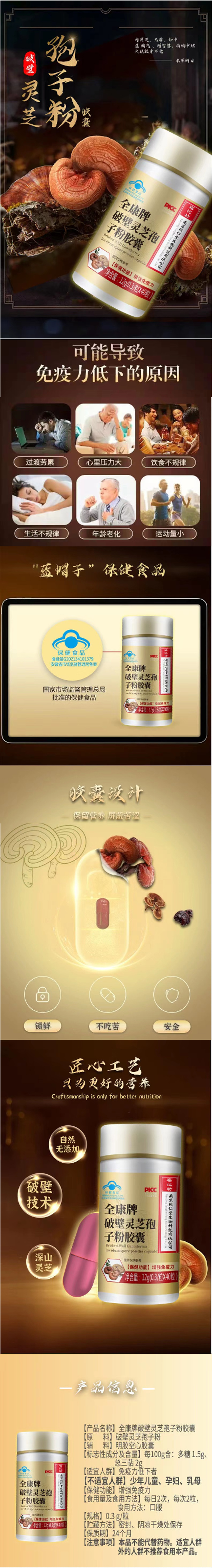南京同仁堂福记坊破壁灵芝孢子粉胶囊增强免疫力 0.3g*40粒/瓶