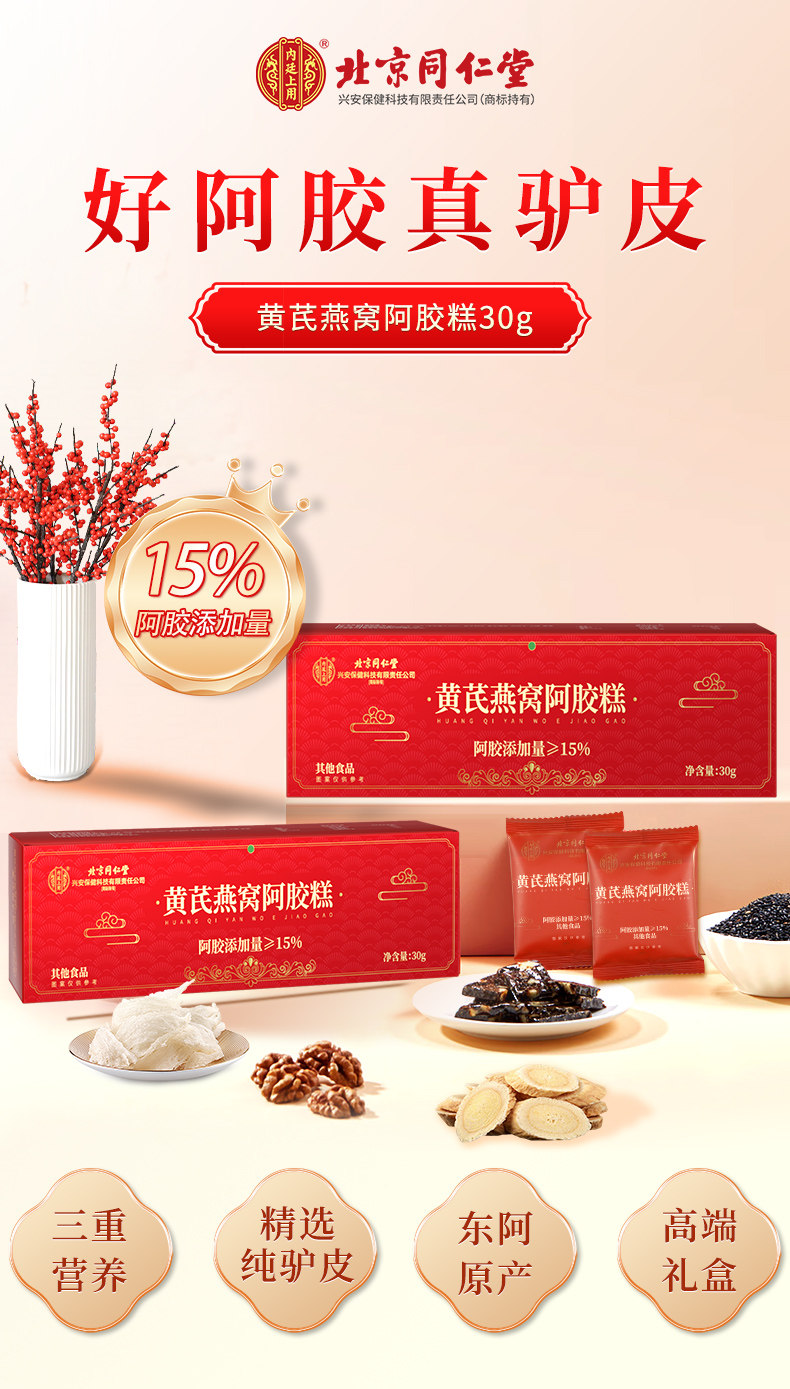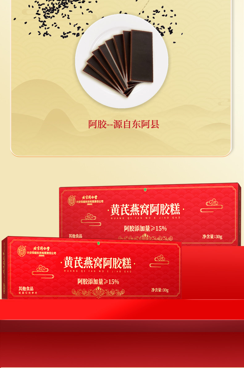 北京同仁堂黄芪燕窝阿胶糕 30g/盒